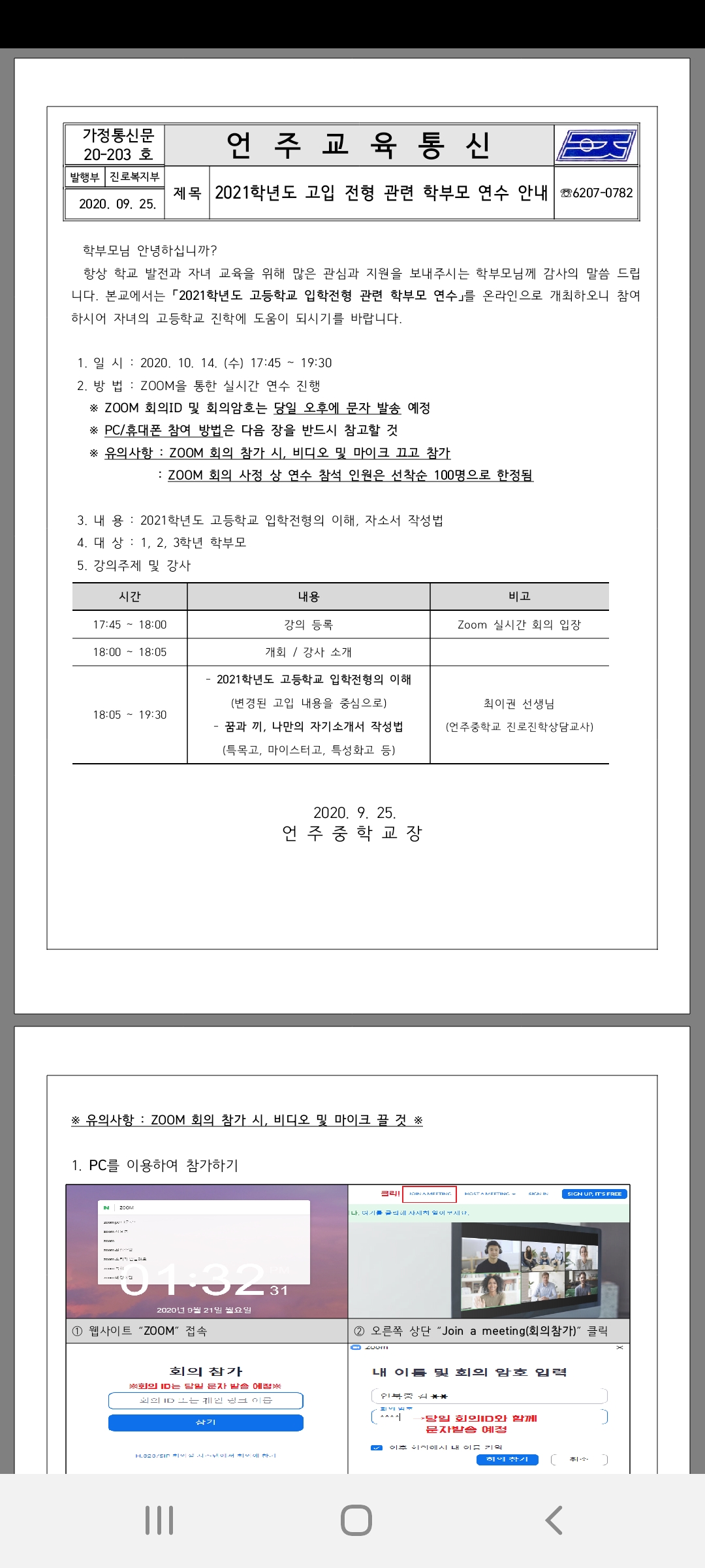 | 청량중학교 온라인 줌 학부모 입학설명회 (0) | 2020.09.26 |
