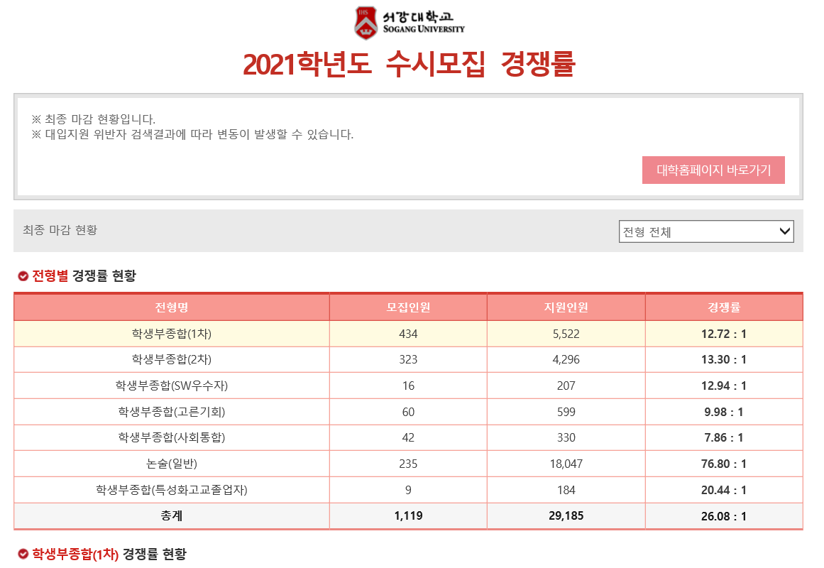 서강대학교 경쟁률 서비스