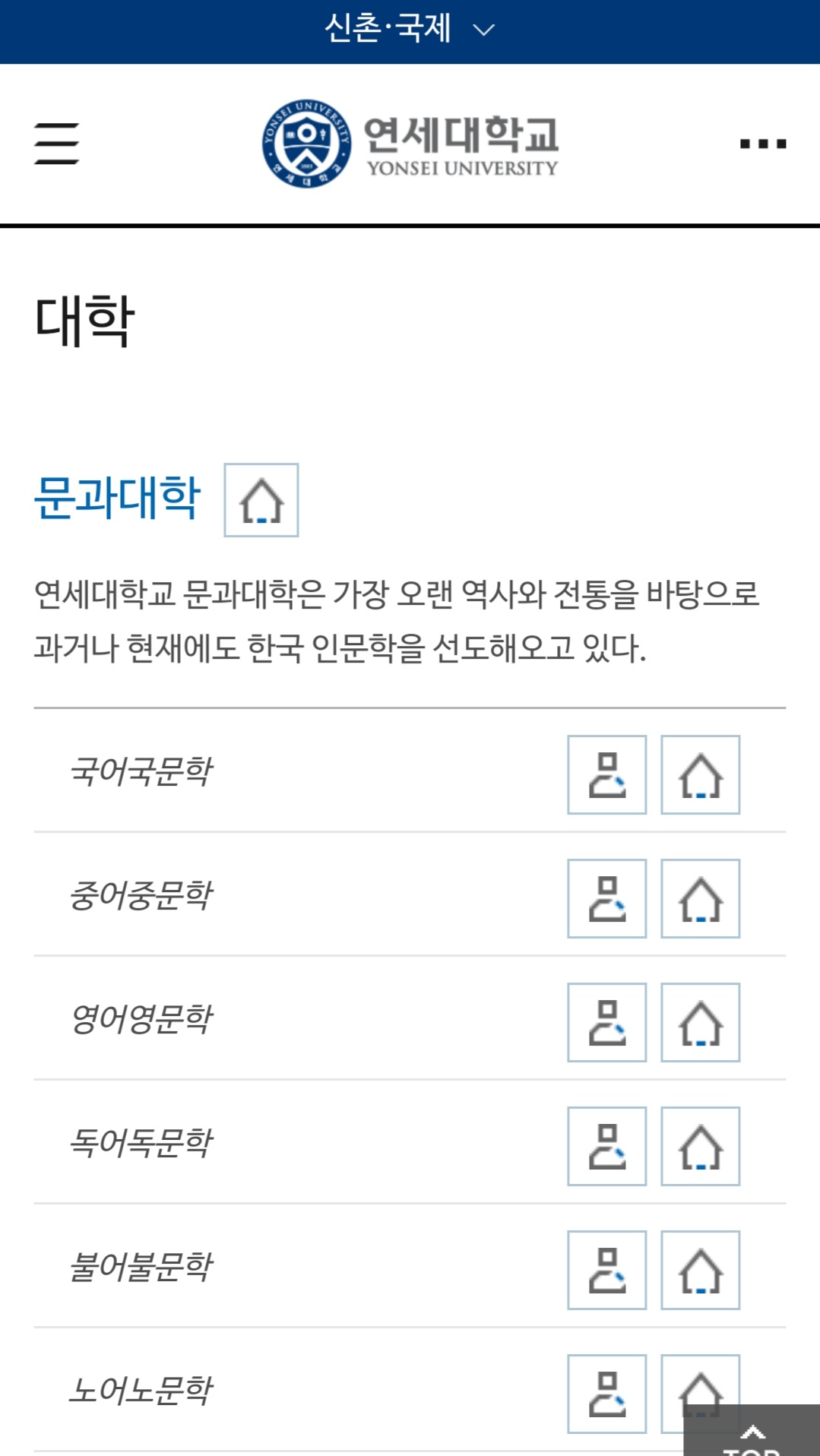 대학 학부/학과 안내 연세대학교 문과대학은 가장 오랜 역사와 전통을 바탕으로 과거나 현재에도 한국 인문학을 선도해오고 있다. 상경대학은 1915년 3월에 조선기독교대학상과를 모체로 하여 ��