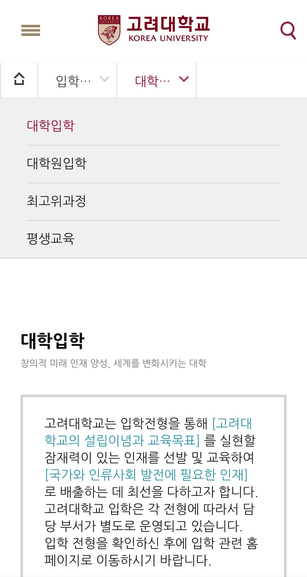 대학입학창의적 미래 인재 양성, 세계를 변화시키는 대학 인쇄하기 글자크기 확대 축소 고려대학교는 입학전형을 통해 [고려대학교의 설립이념과 교육목표] 를 실현할 잠재력이 있는 인재를 선