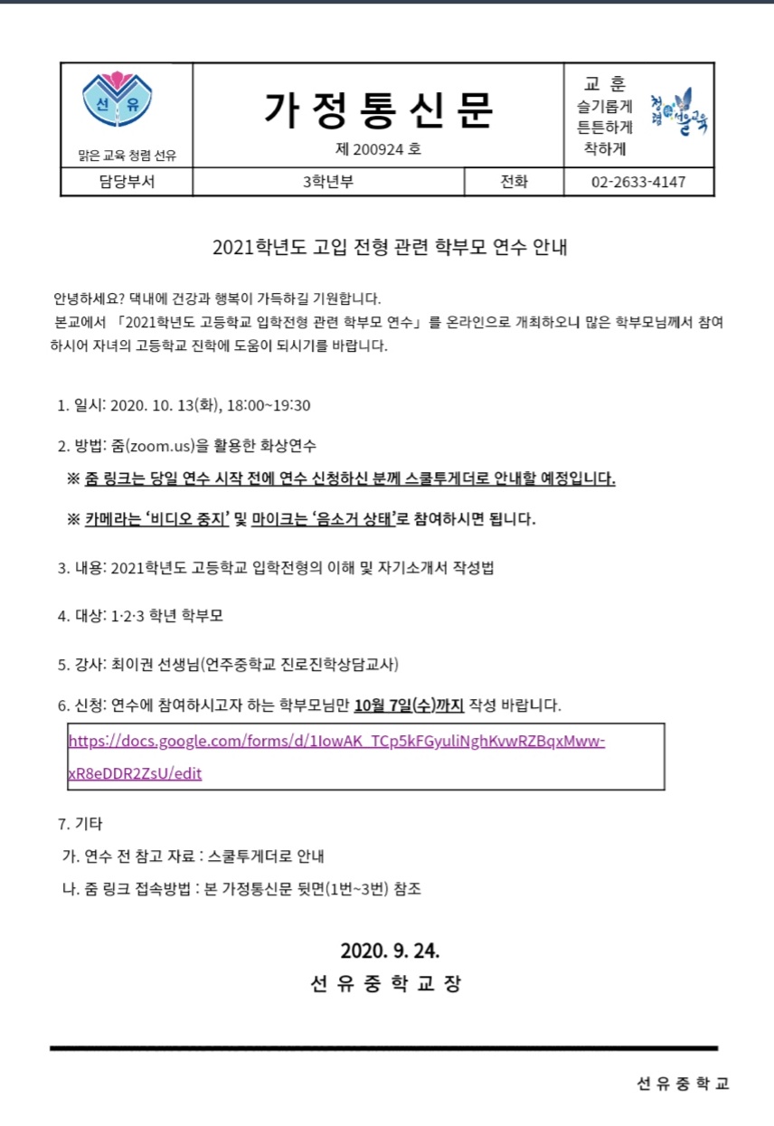 | 21년 언주중 변화된 고입전형 및 자기소개서 작성법 학부모 줌 영상강의 (0) | 2020.10.15 |