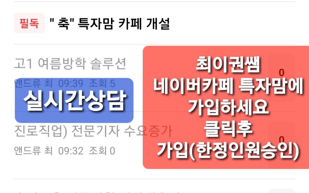 | 학부모 진로진학정보 공익카페 가입하셔서 많은 정보 보세요 (0) | 2021.10.02 |