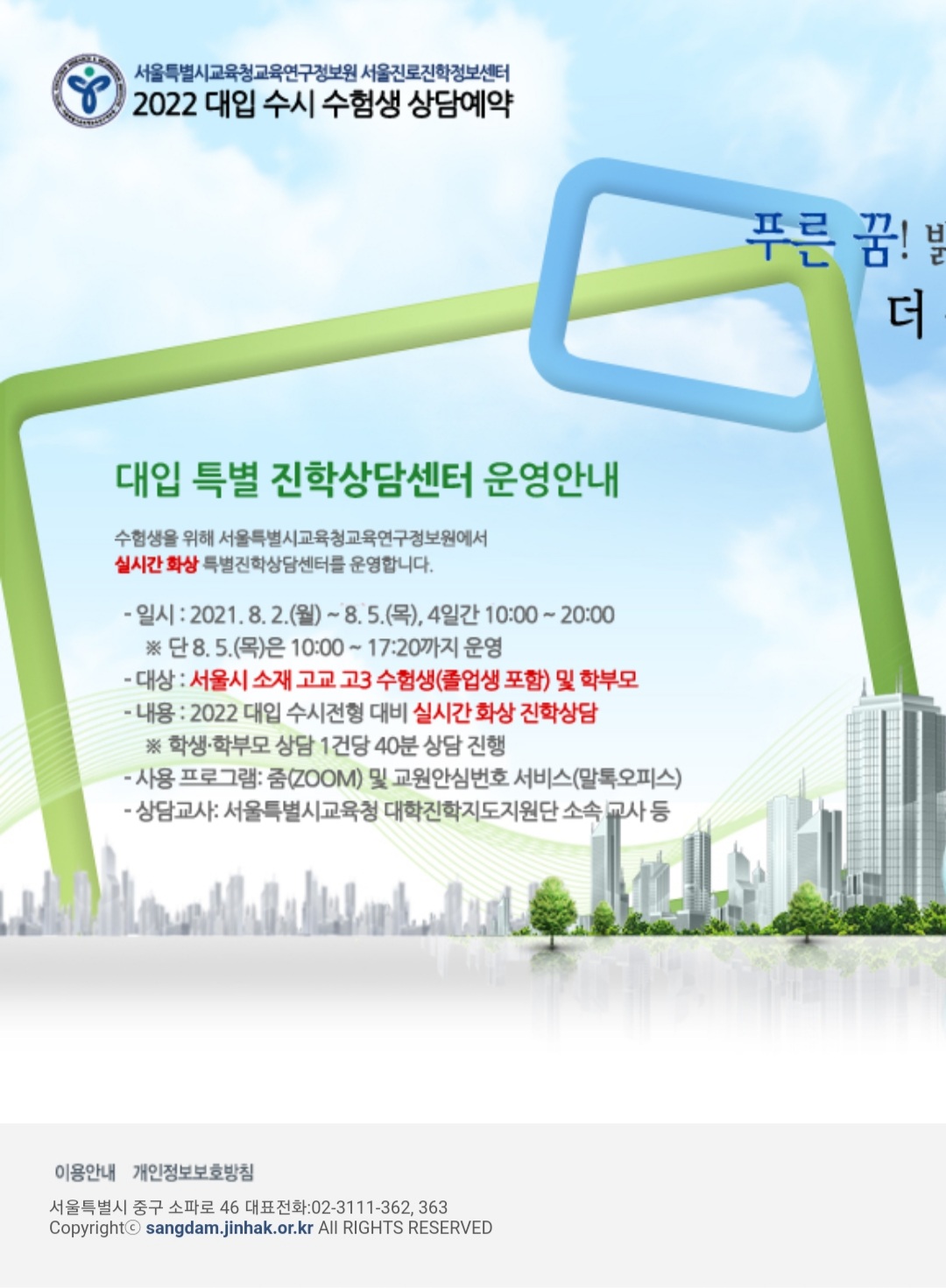 서울특별시교육청교육연구정보원 진로진학정보센터 수험생 상담예약