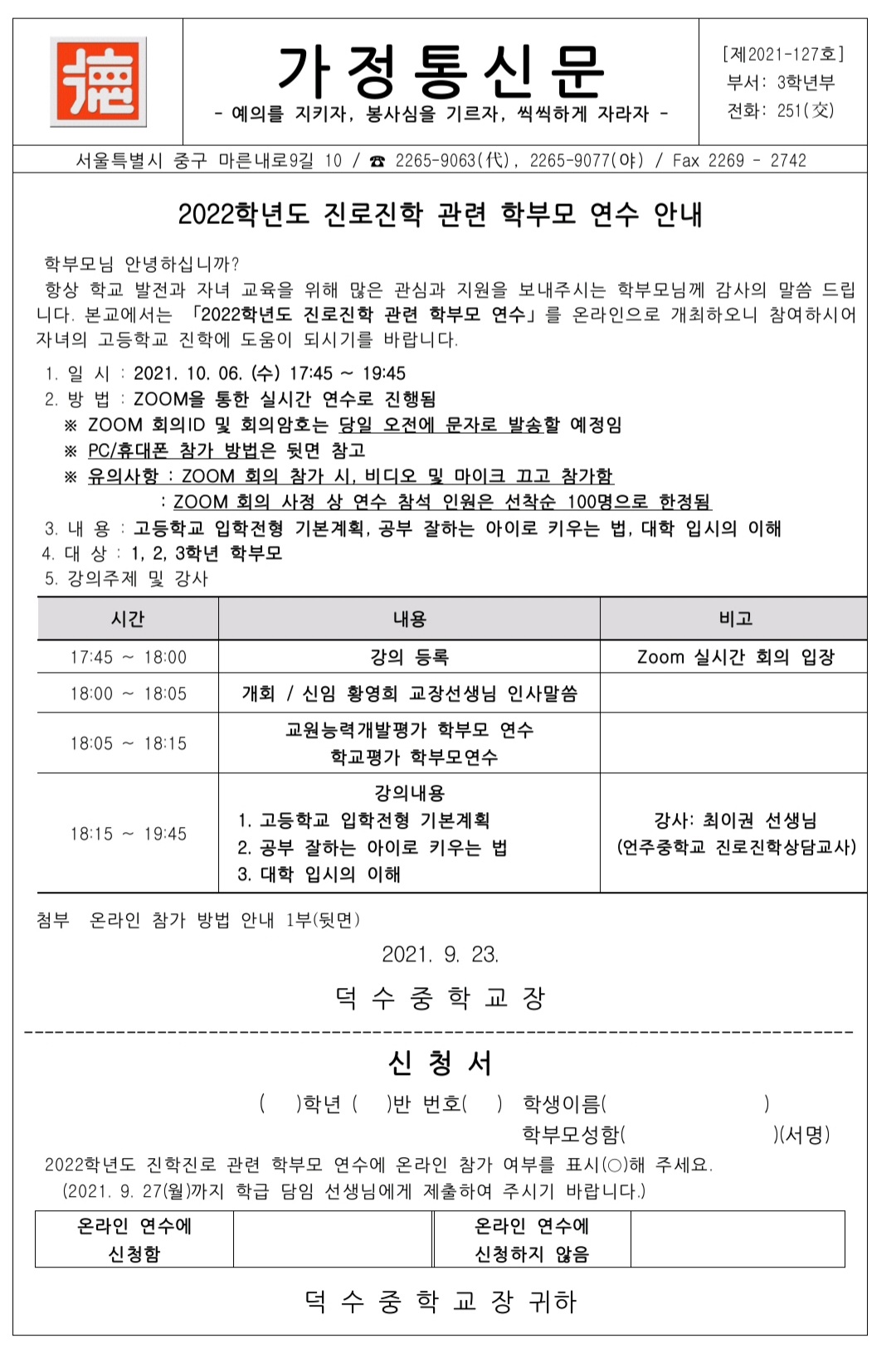 오늘 덕수중 진로특강입니다