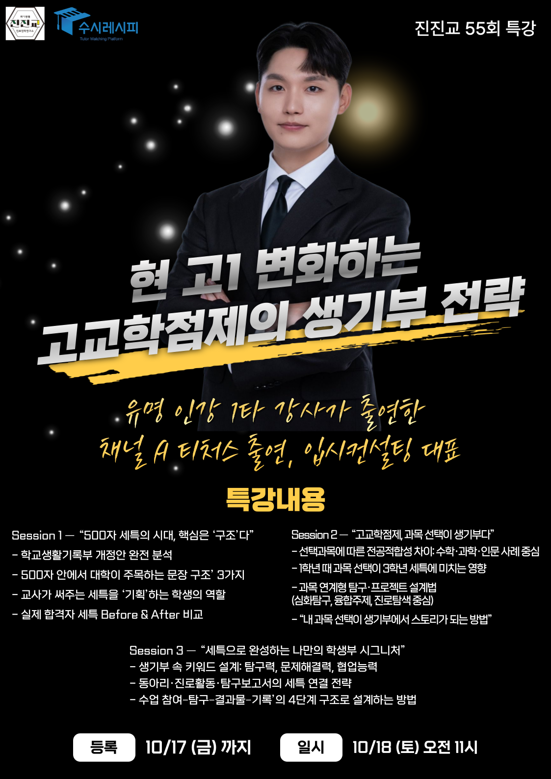 카테고리 없음 ✴️ 김준호 대표 특강 신청 "채널A 티처스 성적을 부탁해" 출연하고, “수시, 정시, 고입” 입시컨설팅 1,000명 이상 진행 by 최이권쌤의 진로진학연구소 2025. 10. 15. https://www.choischool.com/특강신청 최이권쌤의 진로진학연구소진진교는 선한 영향력으로 운영위원 학부모님들과 전문위원들이 함께 만들어가는 교육 불평등 해소를 위한 입시 교육 봉사 모임입니다.choischool.com 공유하기 게시글 관리 최이권쌤의 진로진학연구소
