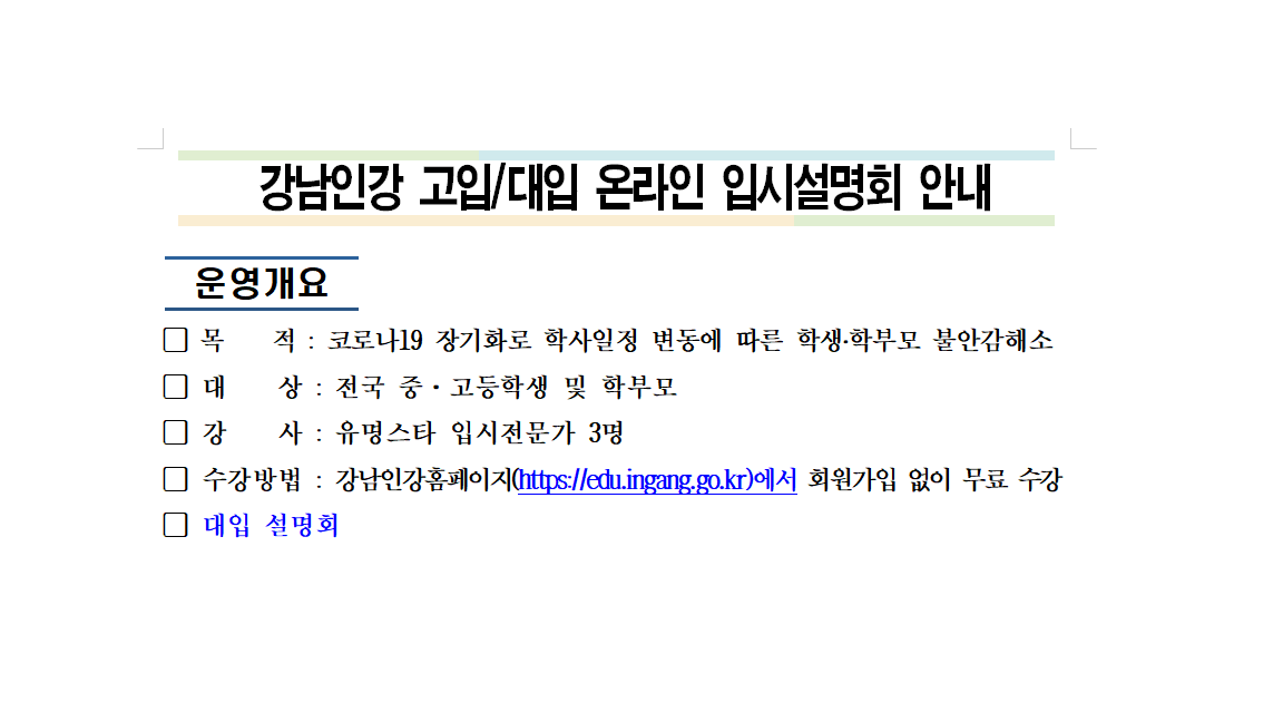 | 2021 고입 입시전형 동영상 안내 (0) | 2020.06.22 |
