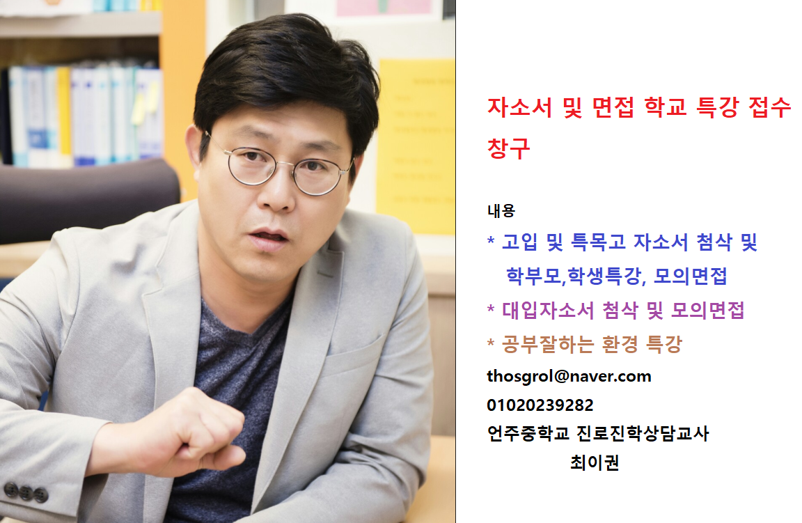| 상암중 학부모자기소개서 및 면접 특강 (0) | 2019.11.28 |