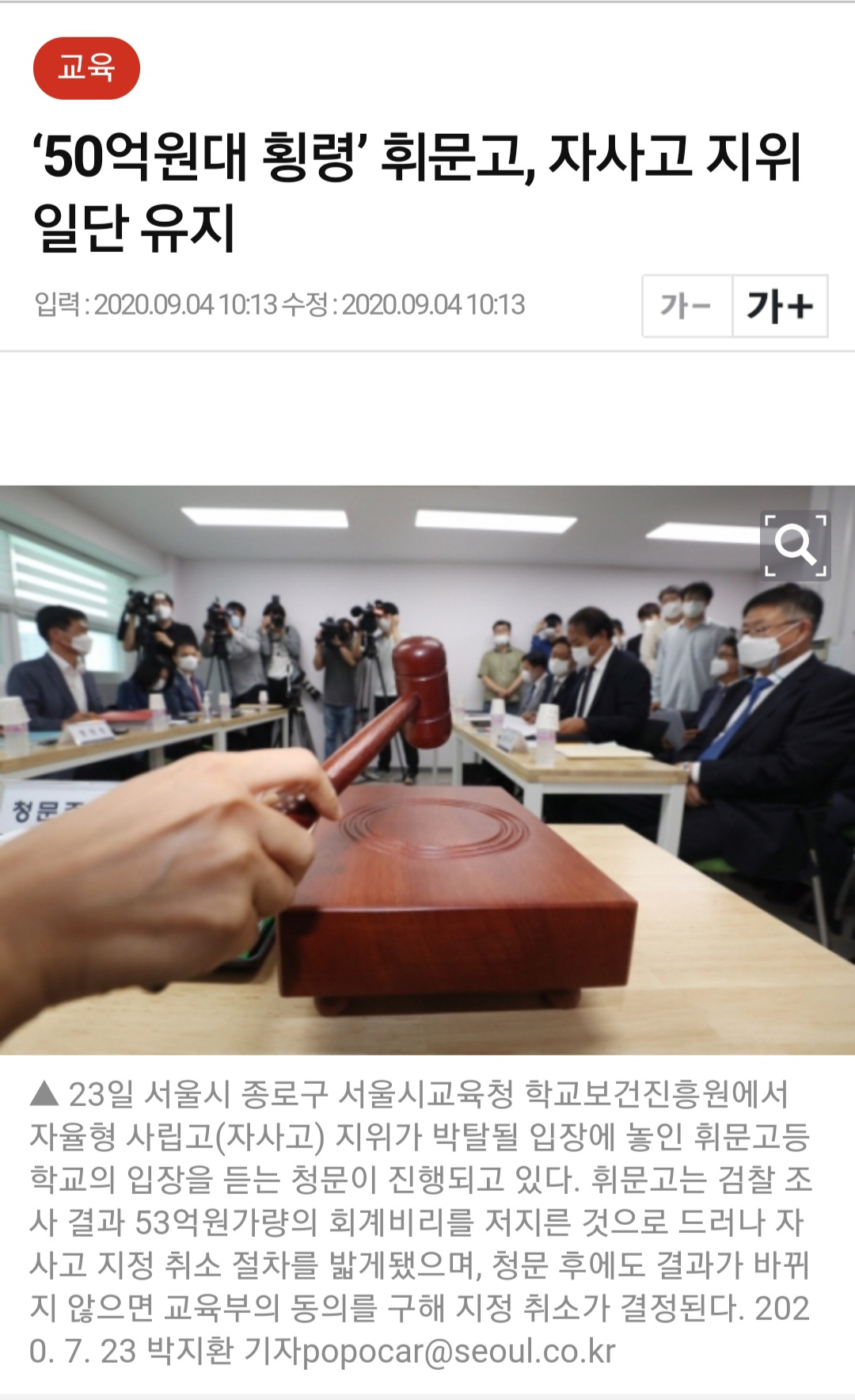 ‘50억원대 횡령’ 휘문고, 자사고 지위 일단 유지