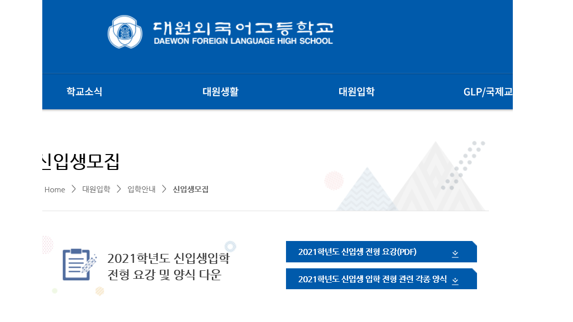 ■ 고입 대입 정보/└ 입학 전형 21년 대원외고 입학전형 및 서류전형 최이권쌤의 진로진학연구소 2020. 9. 14. 15:52 www.dwfl.hs.kr/?act=doc&mcode=131010 ::: 대원외국어고등학교 - 신입생모집 ::: www.dwfl.hs.kr