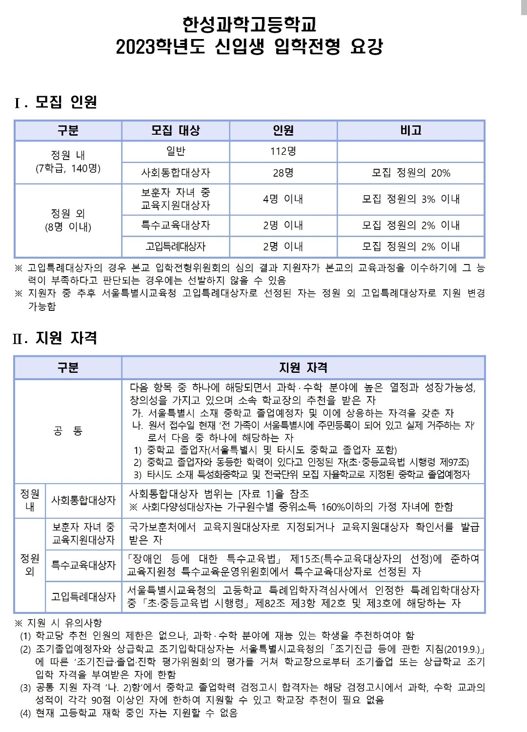 ■ 고입 대입 정보/└ 입학 전형 2023 한성과학고 입학전형 최이권쌤의 진로진학연구소 2022. 5. 25. 11:11 http://naver.me/xXPh4Qb3 2023 한성과학고 입학전형 https://hansungsh.sen.hs.kr/2238/subMenu.do cafe.naver.com