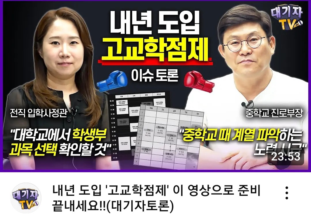 어제 교육대기자 출연 8분 분량으로 고교학점제 설명을 할수가 없었네요. 제 유튜브에 자세한 고교학점제 영상이 많으니 보시기 바랍니다. 구독부탁