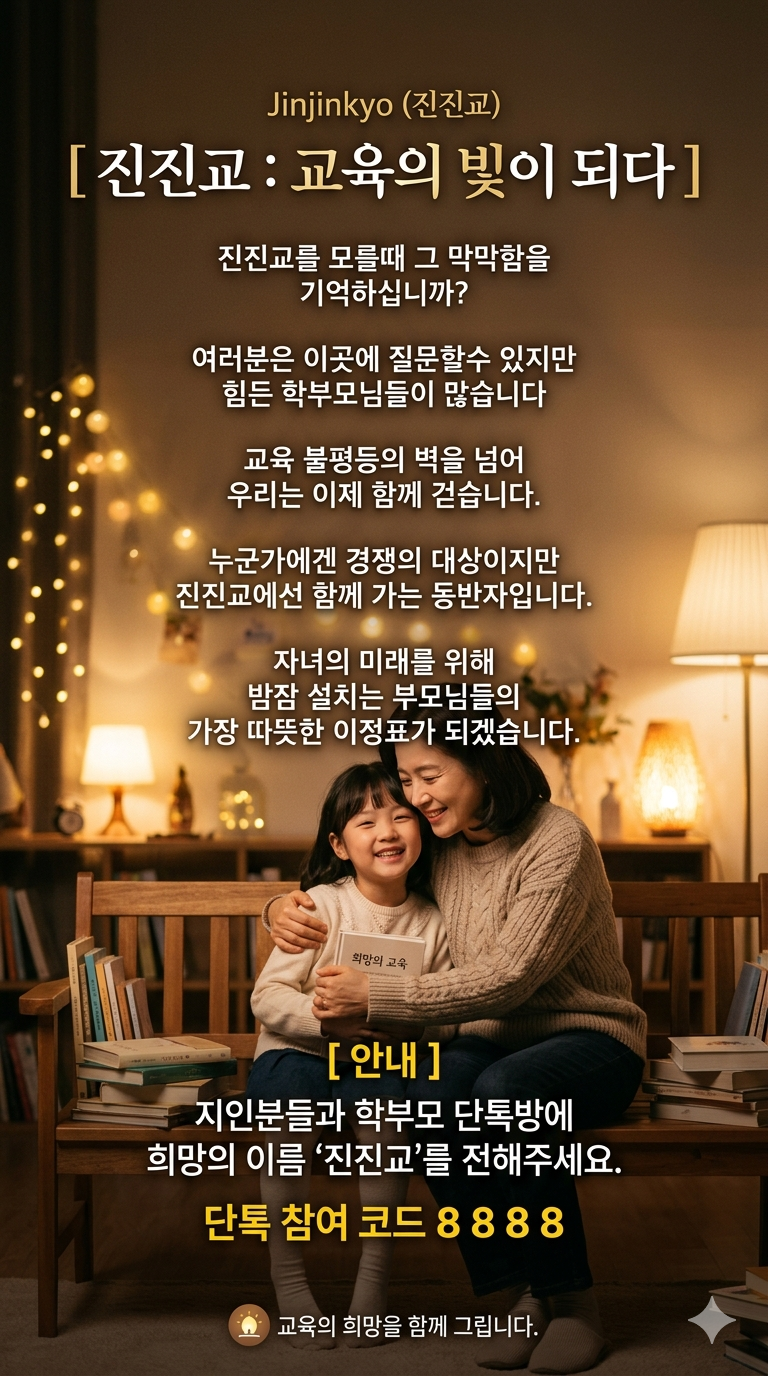 ❤ 현직교사와 유명입시전문가들의 무료 입시 정보방 진진교를 지인이나 가입단톡에 소개해 주세요. 진진교는 경쟁이 아닌 같이 걷고 싶습니다