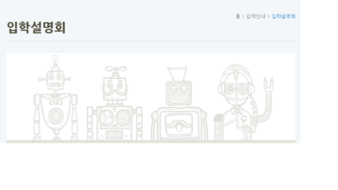 ■ 고입 대입 정보/└ 진로진학정보 2021 서울 로봇고 입학설명회 신청 안내 최이권쌤의 진로진학연구소 2020. 7. 13. 10:31 seoulrobot.hs.kr/143542/subMenu.do 입학설명회 | 서울로봇고등학교 seoulrobot.hs.kr