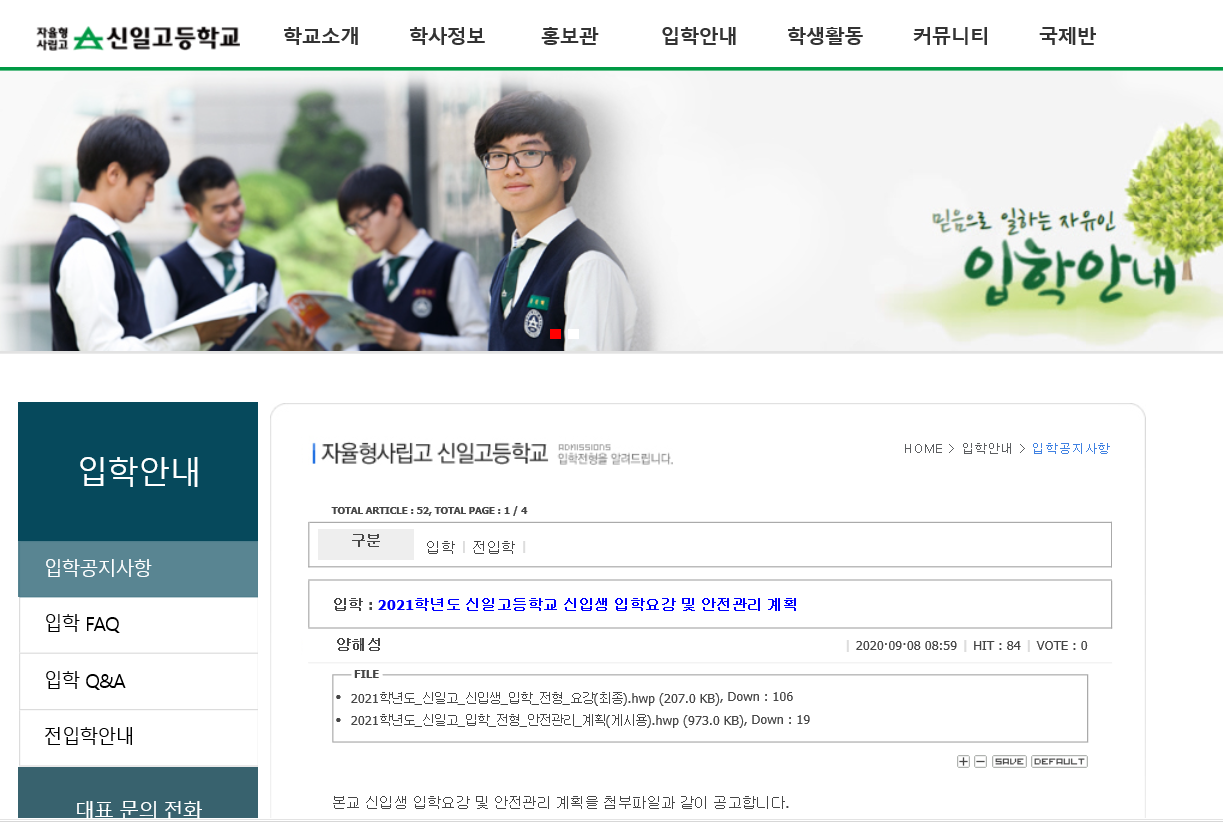 ■ 고입 대입 정보/└ 입학 전형 2021년 신일고 입학전형 최이권쌤의 진로진학연구소 2020. 9. 10. 11:13 www.shin-il.hs.kr/ Shinil High School www.shin-il.hs.kr