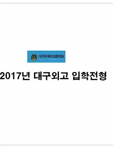 대구외고3 2018년 대구외고 입학전형 http://www.taegu-fh.hs.kr/index.do?menuCd=MCD_000000000000008903 출처: 대구외고 홈피 2017. 8. 21. 2017년 대구외고 입학전형 http://www.taegu-fh.hs.kr/index.do 출처: 대구외고 홈피 2016. 10. 14. 2016년 전국 외국어 고등학교 입학요강 사진출처: 한영외고 홈페이지 2015. 9. 25. 이전 1 다음